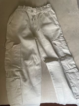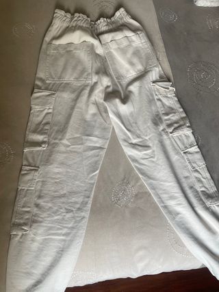 Pantalón tipo cargo blanco de Stradivarius con gomas en el bajo. Talla: S. Venta : 12,00.- €.