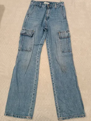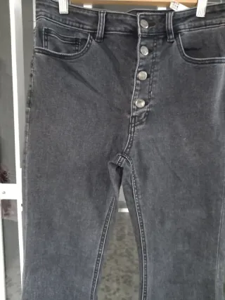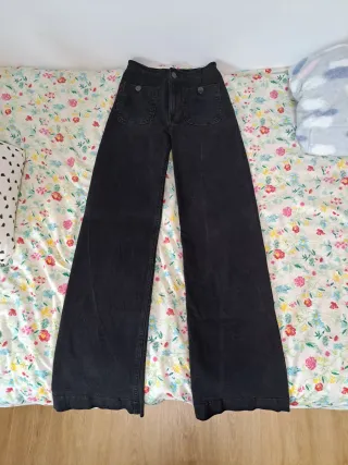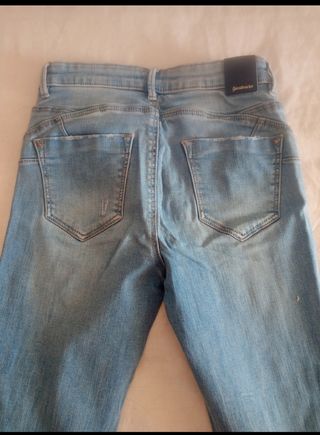 Pantalón vaquero de corte moderno. - El único detalle que tiene es la etiqueta de atrás está rota a la mitad, pero nada más. - Cintura alta. - Bolsillos delanteros y traseros.