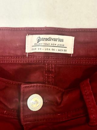 Pantalones de la marca Stradivarius en color rojo. - Talla EUR 38 / USA 06 / MEX 28. - Diseño moderno y cómodo.
