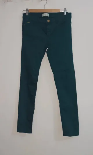 Pantalón vaquero de corte ajustado de lycra - Color verde. - Cierre de botón y cremallera. - Bolsillos delanteros y traseros