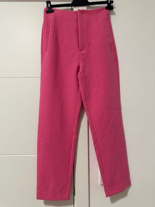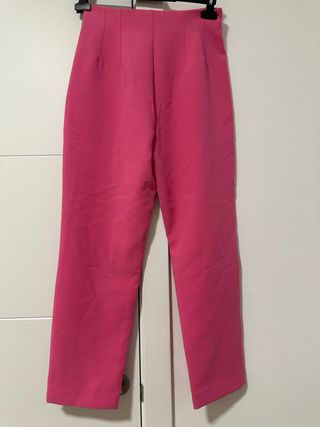 Pantalón de corte chino en color rosa. - Cintura alta. - Bolsillos laterales.