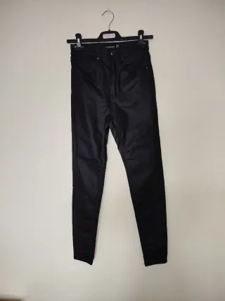 Pantalón de polipiel en color negro. - Corte ajustado. - Talla 32. - Cierre de cremallera y botón. - Bolsillos delanteros y traseros.
