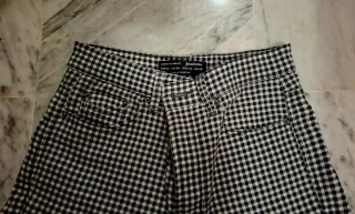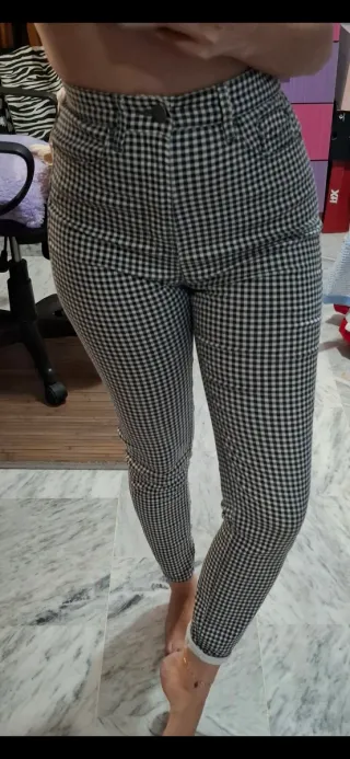 Pantalón de cuadros de Stradivarius. - Diseño de cuadros blanco y negro. - Tiro alto. - Bolsillos. - Tela flexible.