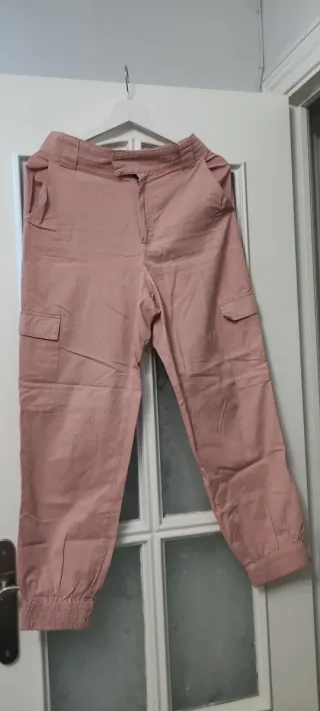 Pantalón estilo cargo en color rosa. Diseño moderno y cómodo. - Cintura con trabillas. - Bolsillos laterales. - Puños elásticos.