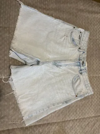 Shorts vaqueros de Stradivarius con un estilo desgastado y moderno. - Diseño con rotos y flecos en el bajo. - Tiro alto. - Lavado claro.