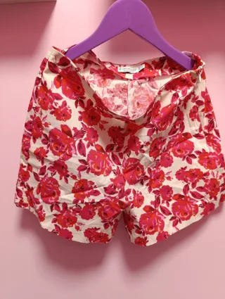 Bermuda de Stradivarius con estampado floral. - Diseño con flores en tonos rosas y rojos. - Cierre mediante cremallera lateral
