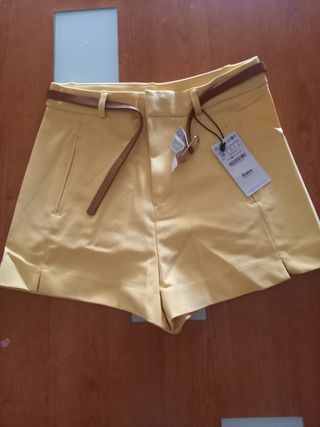 Preciosos shorts en tono azul pastel. Son estilo traje, confeccionados con una tela suave y ligera. Con etiqueta sin estrenar, en perfecto estado.