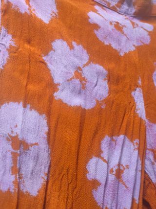 Pantalones largos de Stradivarius con un estampado llamativo. - Diseño con flores en tonos naranja oscuro y lila. - Tejido ligero y con caída. Están nuevos nada más que me los puse y se rompieron de al lado y no me apetece coserlo y ahí los tengo en el cajón son de la temporada de hace dos años y son muy bonitos pero no me lo voy a poner por eso lo vendo barato porque costaron 22,95€