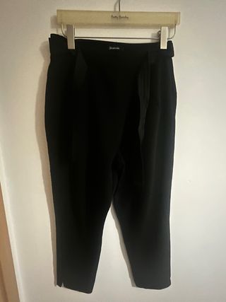 Pantalón de vestir de Stradivarius en color negro. - Cintura alta con cinturón. - Pierna recta. - Bajo con abertura lateral, corte tobillero - Bolsillos delante y detrás (invisibles) Se entrega en Benicalap