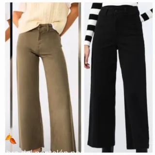 Pantalones de Stradivarius (verde militar) y de Lefties (negros) de corte culotte. - Talla 38. - Diseño ancho y moderno. - No llegan hasta abajo (tobilleros). Por separado a 10€ cada uno. Los 2 juntos a 15€.