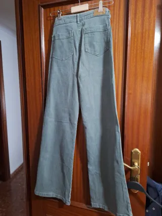 Pantalón vaquero Stradivarius modelo D91 Low Wide. - Corte ancho y tiro bajo. - Talla 32. - Lavado claro.