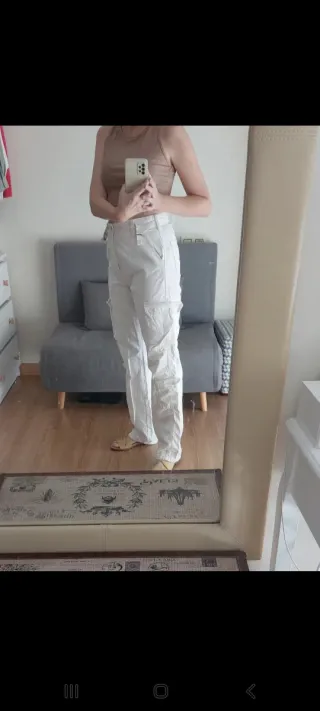 Pantalones estilo cargo en color blanco roto del Stradivarius. - Bolsillos cargo en los laterales.