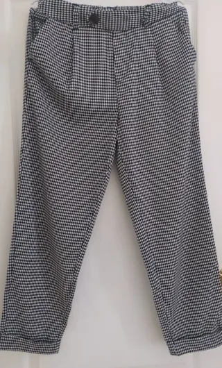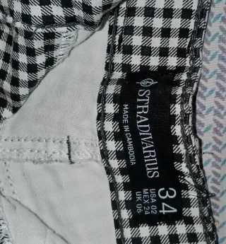 Pantalón de Stradivarius con un diseño de cuadros blancos y negros. - Fabricado en Camboya. - Talla 34 (USA 02, MEX 24, UK 06).