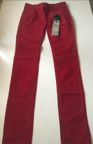 Pantalón vaquero de corte recto en un llamativo tono rojo. Diseñado para un estilo casual y moderno. - Corte recto. - Color rojo vibrante. - Etiqueta Denim Colours incluida.