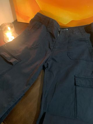 Pantalón cargo de la marca Stradivarius en color negro. Diseño moderno y funcional. - Bolsillos laterales. - Cintura con trabillas. - Cierre de cremallera y botón.
