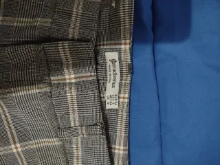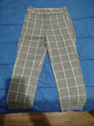 Pantalón de vestir con un clásico estampado de cuadros. - Diseño de cuadros en tonos marrón y gris. - Cintura con trabillas y cierre de botón. - Pierna recta con vuelta en el bajo. - En perfectas condiciones. - Usado una vez. - Va a juego con la blazer de mi perfil.