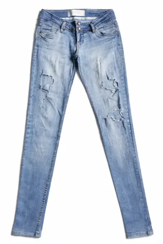 Vaquero / jeans pitillo talla 38 de Stradivarius. Azul claro y con efecto desgastado por la multitud de rotos. Este pantalón sienta genial, muy cómodo además. Con bastante uso pero en buen estado. Entrega en mano en Palencia, resto de España por envío