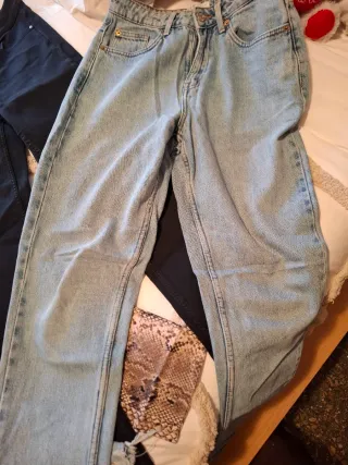 Pantalón vaquero de Stradivarius. Usado muy pocas veces está en perfecto estado. Es el modelo D9, hace por arriba una figura ajustada al cuerpo y abajo es más ancho. - Corte recto. - Bolsillos delanteros y traseros.