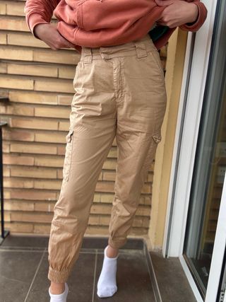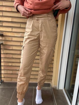 Pantalón estilo cargo de la marca Stradivarius. Son talla 38, tiro alto y se ajustan muy bien a cualquier cintura por la cremallera de los lados. Quedan preciosos