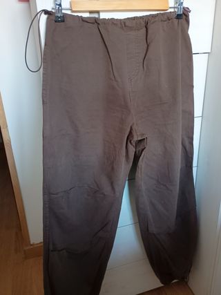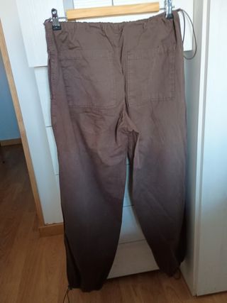 Pantalón casual marrón de Stradivarius, talla M (38/10). Es un pantalón cómodo y de corte amplio. - Tiene cintura elástica con cordón. - Bolsillos traseros. - Bajo con elástico.