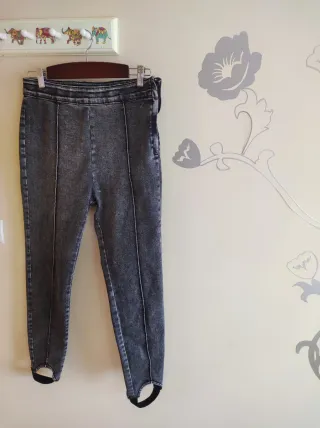 Modernos pantalones vaqueros con un diseño actual y detalle de estribo. Los vendo porque son muy modernos para mí y no es mi estilo. - Corte ajustado. - Costuras marcadas. - Cintura elástica.