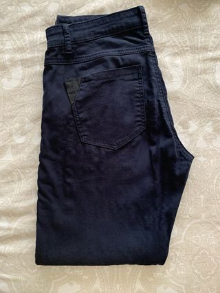 Pantalón de corte ajustado con acabado encerado. - Cintura alta. - Cierre de cremallera y botón. - Bolsillos delanteros y traseros. - Poco usado. - Talla 40.