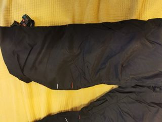 Pantalones de snowboard Ziener en talla L. Son de color beige y cuentan con tirantes ajustables. - Diseño con múltiples bolsillos. - Cremalleras en los bajos de las perneras. - Hay un unico defecto, un pequeño corte en la parte posterior