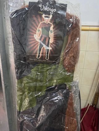Conjunto de cinco disfraces de vikingo para hombre, talla única. Incluye todo lo necesario para una caracterización completa. - Camisa - Cinturón - Sombrero - Pantalón - Muñequeras - Polainas