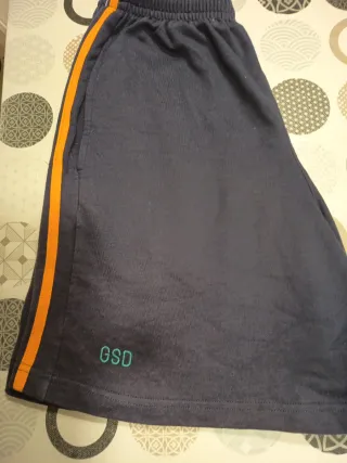 Pantalón corto deportivo con detalles en contraste. - Cintura elástica. - Raya lateral naranja. - Logo bordado GSD.