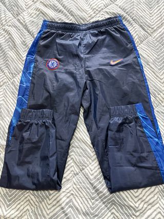Pantalón de chándal del Chelsea FC. - Diseño con detalles azules en los laterales. - Logo del equipo y de Nike. - Cintura elástica con cordón. Presenta un unico desperfecto en el bolsillo posterior, practicamente invisible a a simple vista. En la 5 foto se muestra que no es visible a menos que te acerques hasta una distancia como la 6 foto. Es talla S pero talla como una M Poseo la parte de arriba del conjunto por lo que seria negociable el precio de las dos prendas juntas!