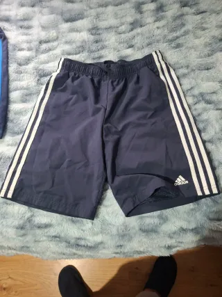 Pantalones cortos deportivos de la marca Adidas. - Diseño con tres rayas blancas laterales. - Cintura elástica con cordón. - Logo de Adidas visible. Está adaptado a 176 cm