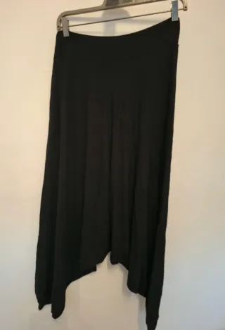 Pantalón amplio talla única, tiene una cinta elástica en la cintura que realza la figura y asegura bien la pieza al cuerpo, puesto puede dar la sensación de falda cortita pero con la seguridad de un pantalón amplio y cómodo. La tela es suave, 100% poliéster. Medidas: Contorno cintura 64 - 100cm Contorno cadera 130 cm Largo 38cm