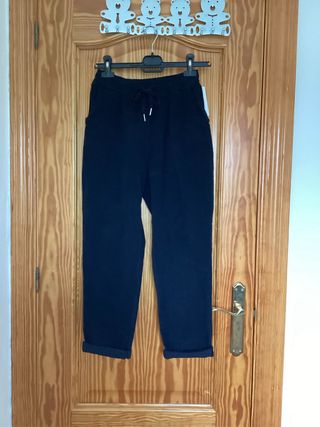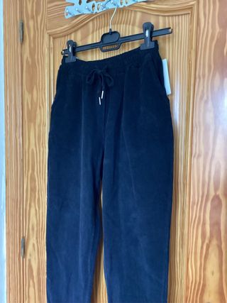 Pantalón de pana para mujer. Color negro. Sin estrenar, con etiqueta. - Tejido suave y cómodo. - Cintura con cordón ajustable. - Bolsillos laterales.
