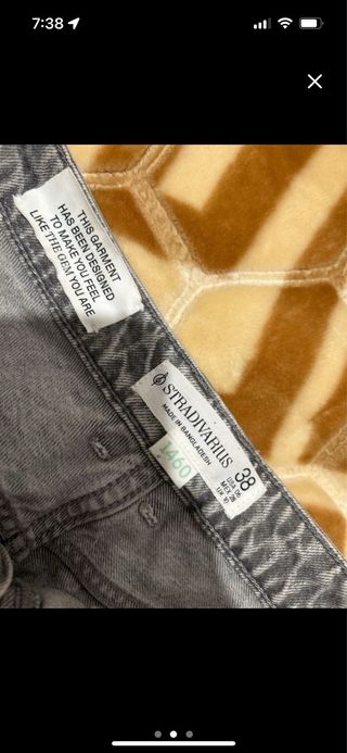 Pantalones vaqueros Stradivarius con un diseño único. - Etiqueta interior con mensaje: This garment has been designed to make you feel like the gem you are. - Fabricados en Bangladesh. - Talla 38 (UE), 06 (USA), 26 (MEX), 10 (UK).