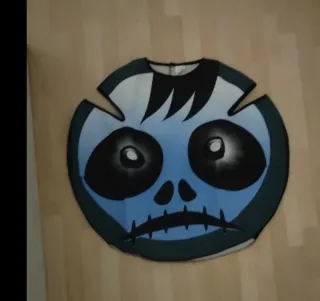 Disfraz de calavera con un diseño llamativo y divertido. - Diseño frontal de calavera azul. - Mangas y pantalón negros. - Ideal para fiestas temáticas o Halloween.