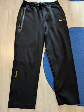 Pantalones deportivos Nike NOCTA en color negro. Cuentan con un diseño moderno y detalles distintivos. - Logo de Nike en amarillo neón. - Detalle de texto NOCTA en amarillo neón en la pierna. - Cremallera en uno de los bolsillos laterales EL SIMBOLO DE NIKE ES PEGATINA. SOLO VENTA EN PERSONA Usado muchas veces pero muy buen estado . Talla L pero como si fuese M