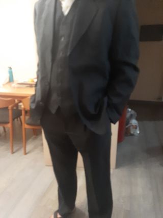 TRAJE GRIS MARENGO, ANERICANA TALLA 54 CHALECO TALLA 52,CAMISA TALLA L Y PANTALON TALLA 42 USADO UNA UNICA VEZ