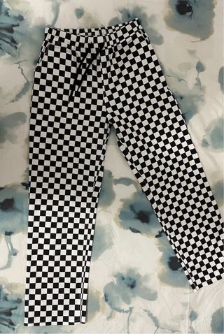Pantalón con estampado de cuadros. - Diseño de cuadros blancos y negros. - Cintura elástica.