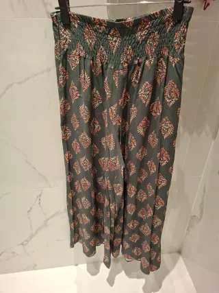 Pantalón palazzo de corte ancho y elegante. mi talla en ese momento era una 38 - Diseño de talle alto. - Detalle de pliegues en la parte delantera. - Bolsillos laterales. - Bajo con acabado semitransparente.