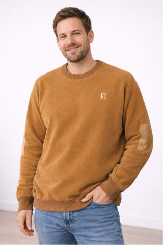 Jersey de punto en color beige/camel, con cuello redondo y coderas decorativas en contraste. Tejido suave y confortable, ideal para el día a día y looks casual o smart-casual. — Detalle de coderas estilo clásico — Punto grueso, agradable y resistente — Corte cómodo y favorecedor — Fácil de combinar con vaqueros o pantalón