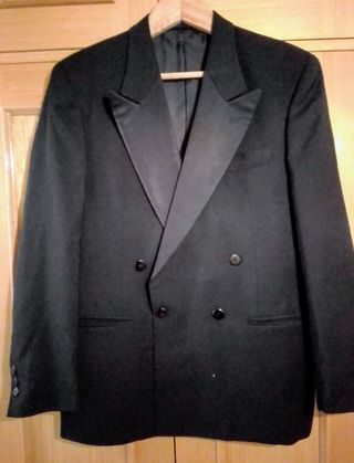 Smoking hombre. Color negro. 100% Pura Lana Virgen. Talla 50. Marca Milano. Buen estado. Tiene un único uso. Medidas cintura pantalón 84 ctms.