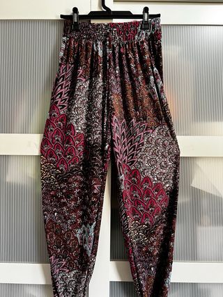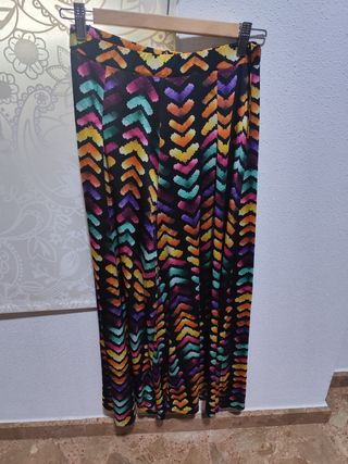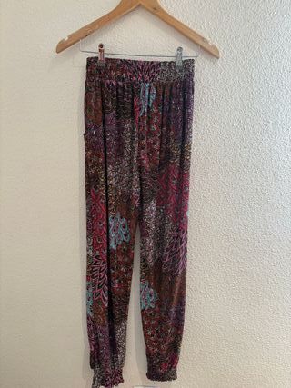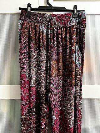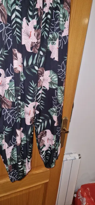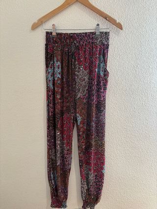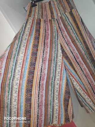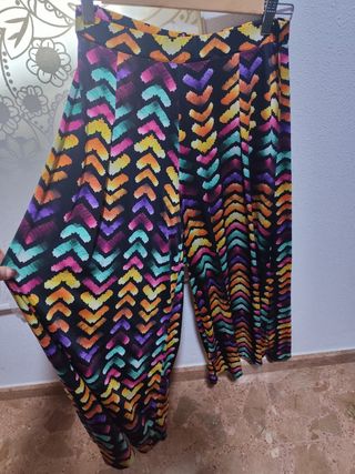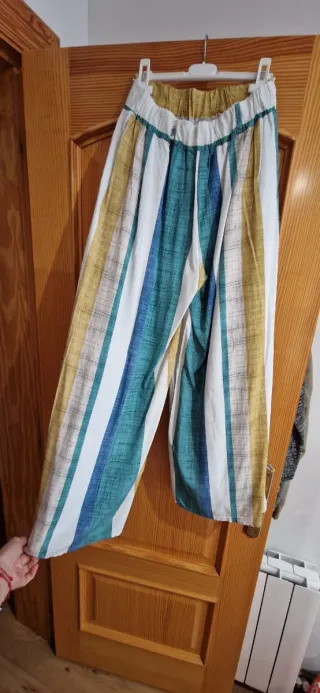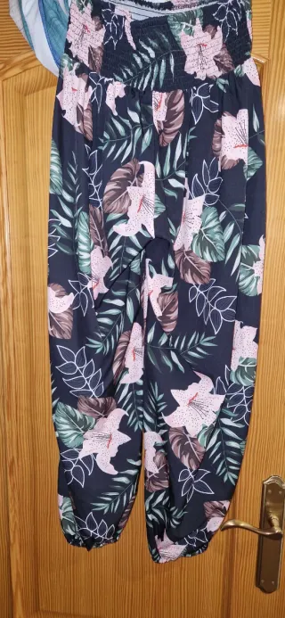 Sin uso, nuevo a estrenar. Tiene la pierna ancha y no ciñe nada, además da mucha talla o poca por los elásticos de la cintura. Es fresquito y muy cómodo. Da figura y los colores son ideales. Es talla única, pero da mucho de si. Precio negociable.