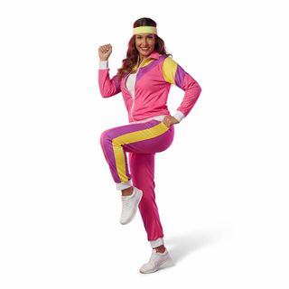 ¡Ponte en forma con el mejor estilo retro! Este disfraz de gimnasta años 80 en color rosa para adulto incluye chaqueta y pantalón con un diseño icónico de bloques en amarillo y morado. Ideal para Carnaval, fiestas temáticas de fitness y eventos de los 80. 💖🤸♀️ 🎒 Contenido del producto: 1x Chaqueta de gimnasta rosa 1x Pantalón de gimnasta rosa 📌 Nota: No incluye accesorios adicionales como cinta para el pelo, camiseta interior, calcetines ni calzado.