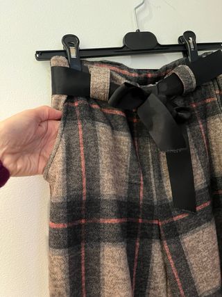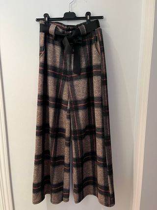 Pantalones de cuadros con un diseño moderno y cómodo. - Cintura alta con cinturón de lazo. - Pierna ancha. - Estampado de cuadros escoceses.