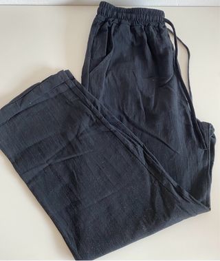Pantalón largo de color negro. Es cómodo y versátil. - Cintura elástica con cordón. - Bolsillos laterales. Medidas: 34cm de cintura y 94cm de largo.
