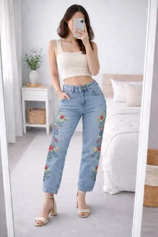 Vaquero bordado flores – ZARA Basic Denim
