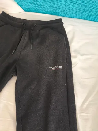 Pantalón largo de la marca McKenzie en color negro. Talla M. Esta bastante usado pero se conserva bien, unico detalle el pequeño desgaste en las letras "McKenzie" en la parte delantera