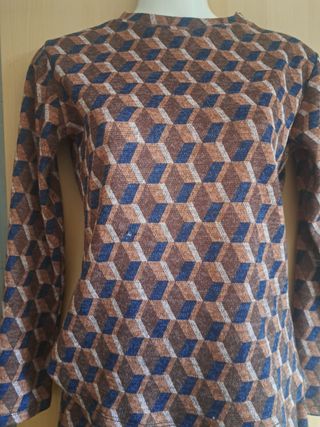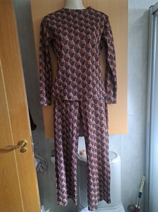 Conjunto de pantalón y top con un llamativo estampado geométrico. - Pantalón de corte ancho. - Top de manga larga.