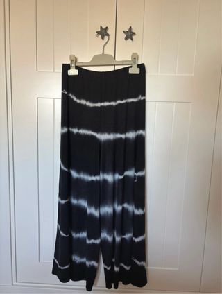 Pantalón de corte fluido y largo hasta el tobillo con un llamativo estampado tie-dye. - Diseño con rayas irregulares. - Cintura elástica cómoda.