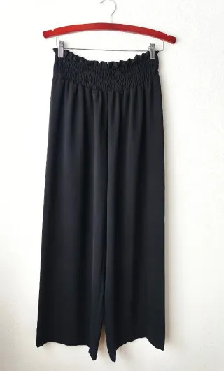 Pantalón palazzo de corte ancho y cintura elástica. - Diseño fluido y cómodo. - Cintura fruncida con goma. - Pierna ancha y caída.